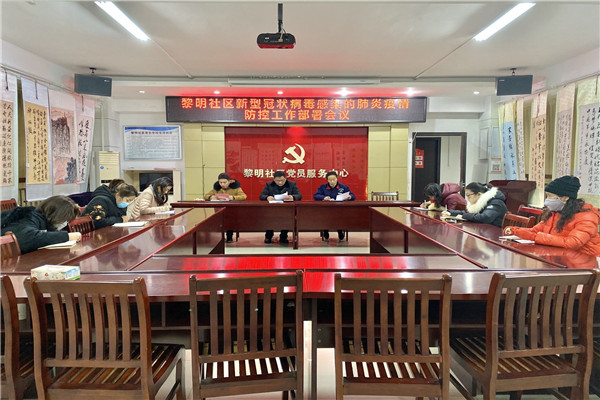 2020年1月26日上午9时,洞山街道黎明社区在二楼会议室召开新型冠状病毒感染的肺炎疫情防控工作部署会议,社区两委工作人员、物业办负责人参加会议。黎明社区张贤书记主持会议。