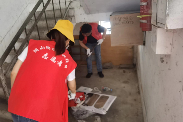 洞山街道中兴社区范围大且大多属于开放式老旧小区,历史遗留环境问题多。党员志愿者带上扫帚、垃圾夹、铁锹、手套等工具对卫生死角、“牛皮癣”、烟头、乱堆乱放等进行重点整治清理,同时对乱堆放的居民进行了文明劝导,经过大家一上午的不辞辛苦、齐心协力的奋战,辖区面貌焕然一新,附近居民纷纷点赞。