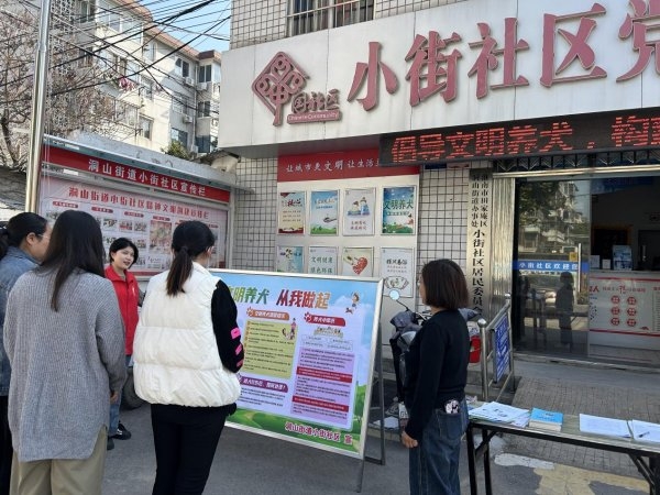 为进一步规范社区文明养犬行为,营造整洁有序、安全和谐的社会环境,助力和谐社区建设。近日,洞山街道小街社区开展“倡导文明养犬,构建文明社区”宣传活动。