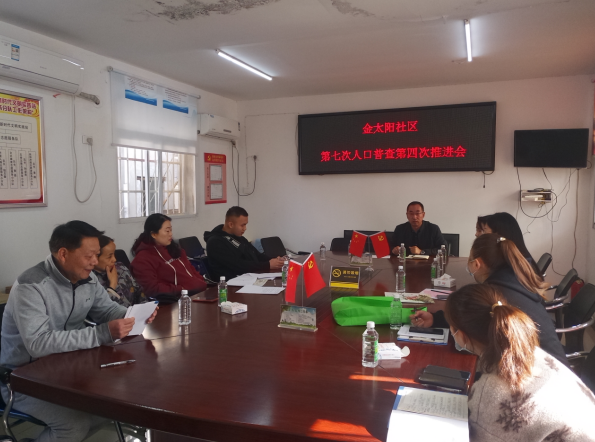 2020年11月11日上午9点,淮滨街道金太阳社区召开第七次全国人口普查工作第四次推进会,金太阳社区党支部书记李飞主持并讲话,社区所有普查员,普查指导员参加了会议。