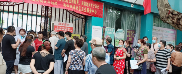 “请各位出示健康码,有序排队。”7月9日上午9点,淮滨街道新冠疫苗接种点门外,居民们早已排起了长队,扬声器里不间断地播放着注意事项,工作人员们则有条不紊地引导前来接种的居民排队登记。