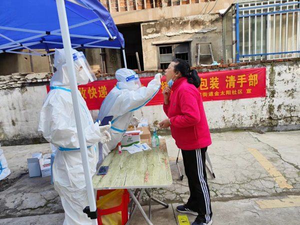 2022年4月1日,淮滨街道核酸检测点,党员志愿者在行动。