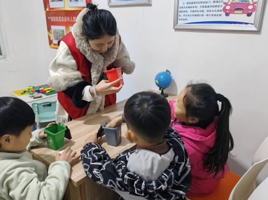 活动中,社区志愿者通过垃圾分类小道具让孩子们了解和掌握生活中垃圾的种类、可回收物的利用价值、有害垃圾的危害性等相关垃圾分类小知识。为了能让孩子们更好地牢记垃圾分类知识和方法,志愿者带领大家一起做垃圾分类小游戏,通过把标识认知卡放进正确的垃圾分类桶模型中,让孩子们在游戏中获取垃圾分类小知识,现场气氛极为活跃。接着,通过“一教,二问,三解答”的方式,鼓励孩子们定时定点分类投放垃圾,让孩子在日常生活中化身环保小卫士,养成保护环境、爱护环境的良好习惯,坚持做好垃圾分类,一起带动身边人,守护我们共同的家园。