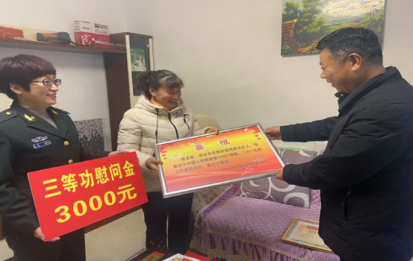 1月15日上午,龙泉街道党工委书记王义、武装部长连娣带队给龙泉街道立功受奖现役军人家属送去喜报及奖金,祝贺优秀现役军人姚多磊在部队取得的优异成绩。对现役军人家属的无私奉献表示崇高敬意,感谢他们为国家为部队培养输送了优秀人才,同时希望军属一如既往地支持孩子安心服役,鼓励他们在本岗位上再创佳绩,再立新功;对献身国防事业、履行军人职责、为实现中国梦、强军梦贡献力量的现役军人表示感谢。