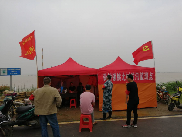 舜耕镇党员干部不分昼夜坚守在防汛一线。