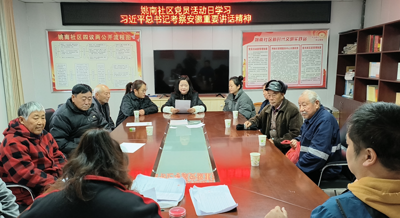 为深入学习宣传贯彻习近平总书记考察安徽重要讲话精神,切实把广大党员干部的思想和行动统一到习近平总书记考察安徽重要讲话精神上来,2024年11月19日,姚南社区党总支宣传委员刘美凤同志为辖区党员群众开展以“习近平总书记考察安徽重要讲话精神为指导,全面贯彻落实党的二十届三中全会精神”为主题的宣讲活动。