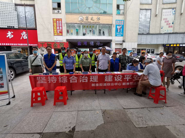 为进一步提升辖区居民法治观念和法律素质,弘扬法治精神。6月17日下午,新淮司法所牵头新淮派出所、街道综治中心、文化社区,在辖区金湾名街开展“坚持综合治理建设平安新淮“主题法治宣传活动。